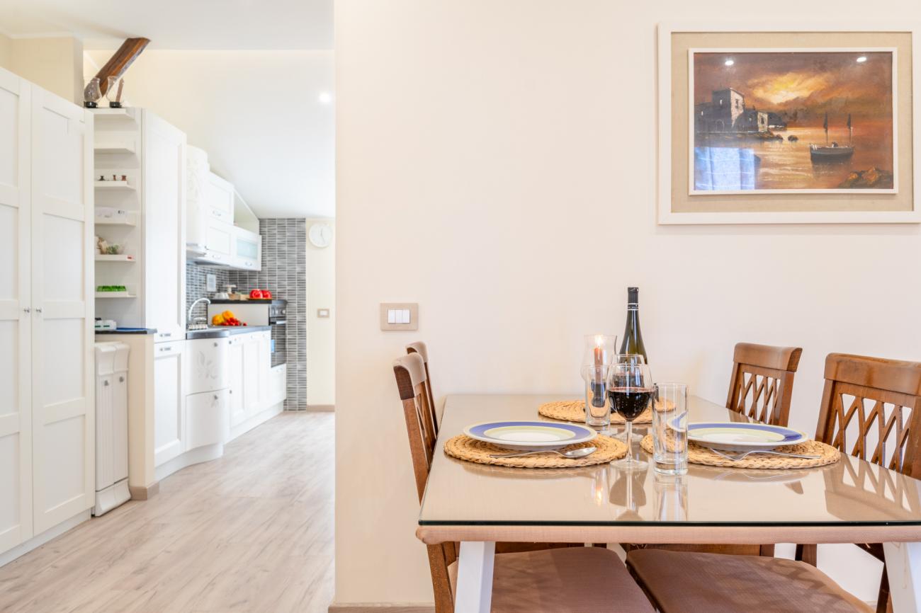 Per gli amanti della cucina, la nostra casa vacanza dispone di una cucina completamente attrezzata, dove potrete preparare i vostri pasti preferiti da gustare all'interno o all'aperto, nel nostro grazioso spazio esterno arredato con tavolo e sedie.