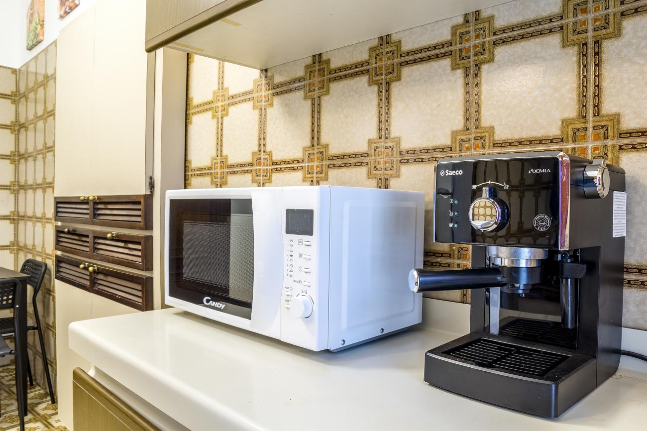 L'appartamento è composto da un'ampia camera climatizzata con letto matrimoniale e balconcino, una camera con due letti singoli e un ampio soggiorno climatizzato con divano letto matrimoniale, TV a schermo piatto e balcone. Completa l'appartamento una cucina completamente attrezzata e un bagno con vasca. Sono inoltre disponibili un'asse da stiro e un ferro da stiro e l'asciugacapelli.