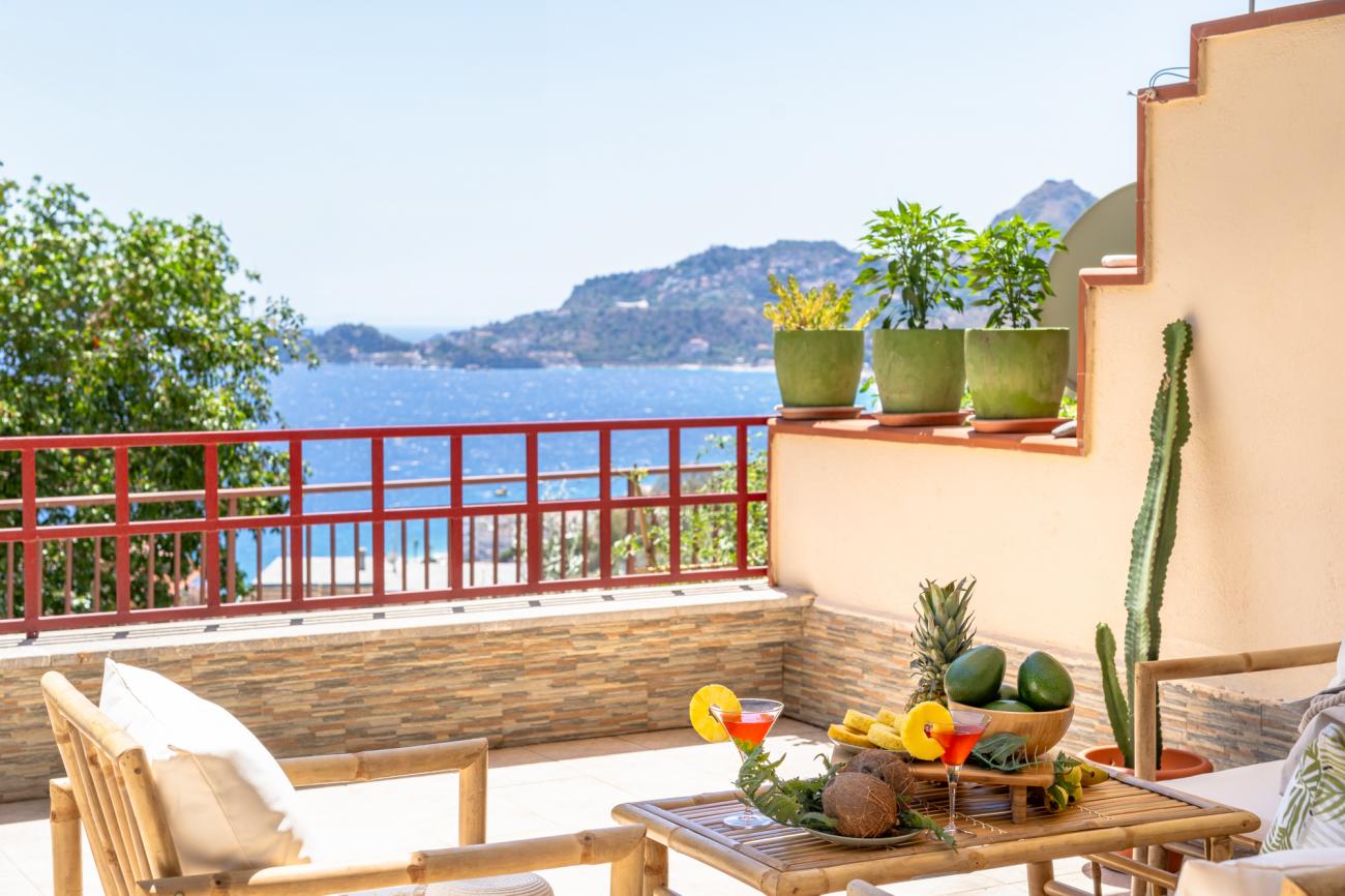 Casa vacanza Sicilia - Benvenuti nella nostra incantevole casa vacanza situata nella splendida località di Letojanni, in Sicilia. Questa accogliente dimora è l'ideale per una vacanza rilassante e memorabile, offrendo spazio sufficiente per ospitare fino a 4 persone. La casa è composta da una camera da letto matrimoniale e due lettini aggiuntivi, garantendo il comfort per tutta la famiglia o per un gruppo di amici. Situata in una posizione privilegiata, la nostra casa vacanza offre una vista mozzafiato sul mare, regalandovi tramonti indimenticabili direttamente dal vostro terrazzo o balcone. Letojanni è una località ricca di fascino e offre una varietà di attività e attrazioni per soddisfare tutti i gusti. Gli amanti del mare potranno godersi giornate di relax sulle splendide spiagge sabbiose o partecipare a emozionanti attività acquatiche, come snorkeling e immersioni subacquee, per esplorare la ricca vita marina della zona. Per coloro che desiderano scoprire la cultura e la storia della Sicilia, nelle vicinanze si trovano affascinanti siti archeologici e città ricche di tesori, come Taormina a soli 3 Km con il suo famoso Teatro Greco e il centro storico pittoresco, facilmente raggiungibile dalla nostra casa vacanza oppure le famose Gole dell'alcantara a soli 15 Km o una visita al vulcano Etna a circa 30 Km. L'aeroporto di Catania Fontanarossa dista soli 55 Km. Tassa di soggiorno 1,20 € a persona a notte.