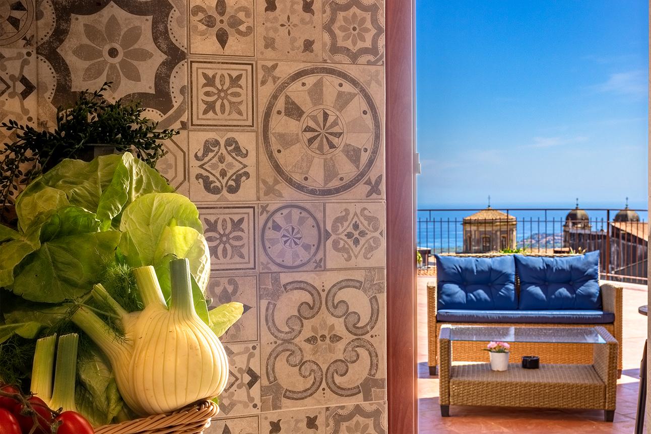 Il vero fiore all’occhiello è l'ampio terrazzo, da cui si può ammirare un panorama mozzafiato che spazia dal mare scintillante alla città, mentre dal balcone laterale si gode di una vista spettacolare sulla cima dell’Etna.