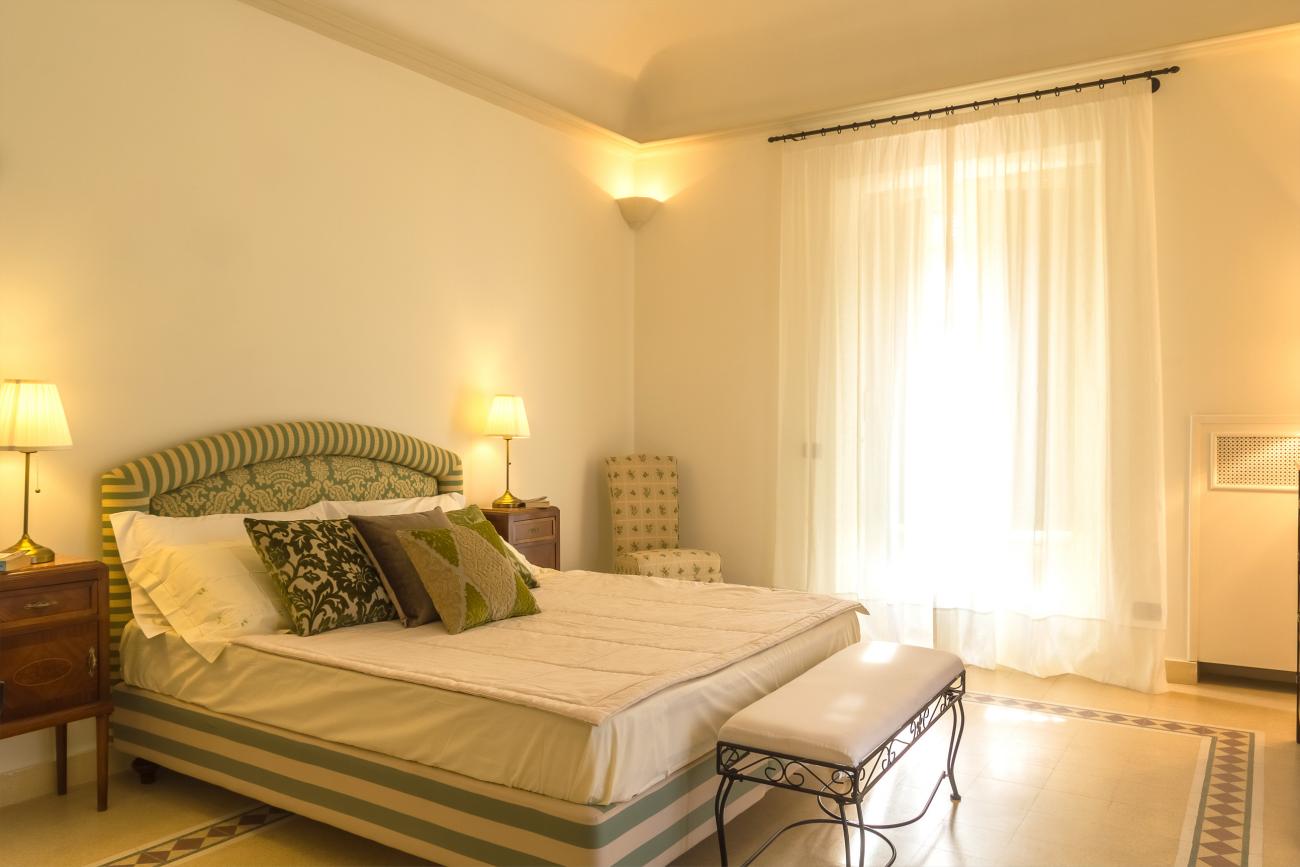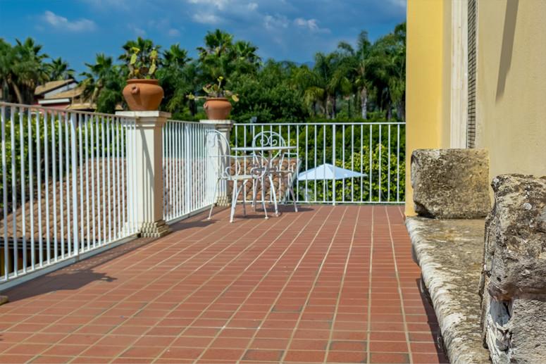 Al piano superiore vi sono tre camere da letto: una matrimoniale con letto king size che gode di vista mare e giardino di agrumi, la seconda camera da letto matrimoniale con vista sul vulcano Etna e sulla incantevole piscina con giardino, una terza camera da letto, con vista mare e giardino di agrumi, dotata di due letti singoli all'occorrenza trasformabili in letto matrimoniale, un bagno al piano con vasca. Le camere da letto, dotate di aria condizionata sono servite da balconi ed ampia terrazza