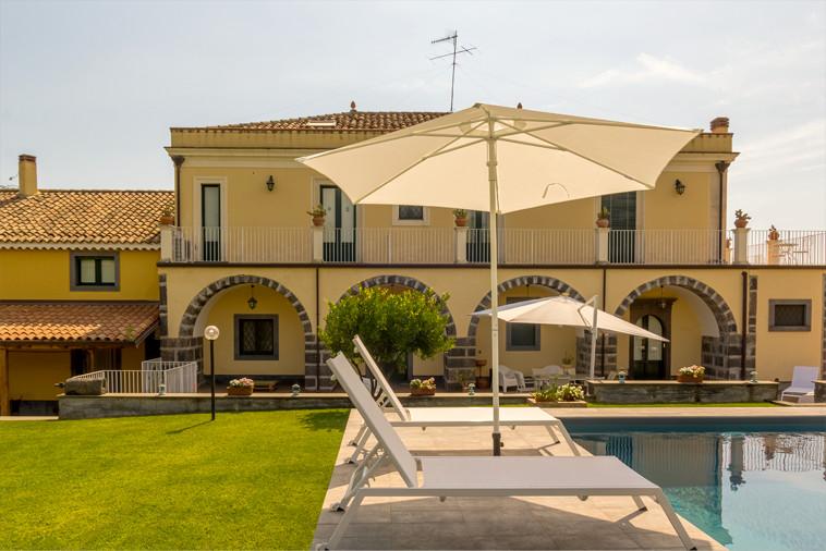 Questo elegante palazzo padronale dell'800, ubicato alle pendici del vulcano Etna e vicino all'incantevole Taormina gode di una vista mozzafiato sul mare e sul vulcano ed è espressione dell'accoglienza tipica siciliana. La casa è dotata di ampi e curati spazi interni su due livelli, nonché di accoglienti ed esclusivi spazi esterni dove è possibile rilassarsi in giardino,a bordo piscina prendendo il sole o dedicandosi ad una piacevole lettura.