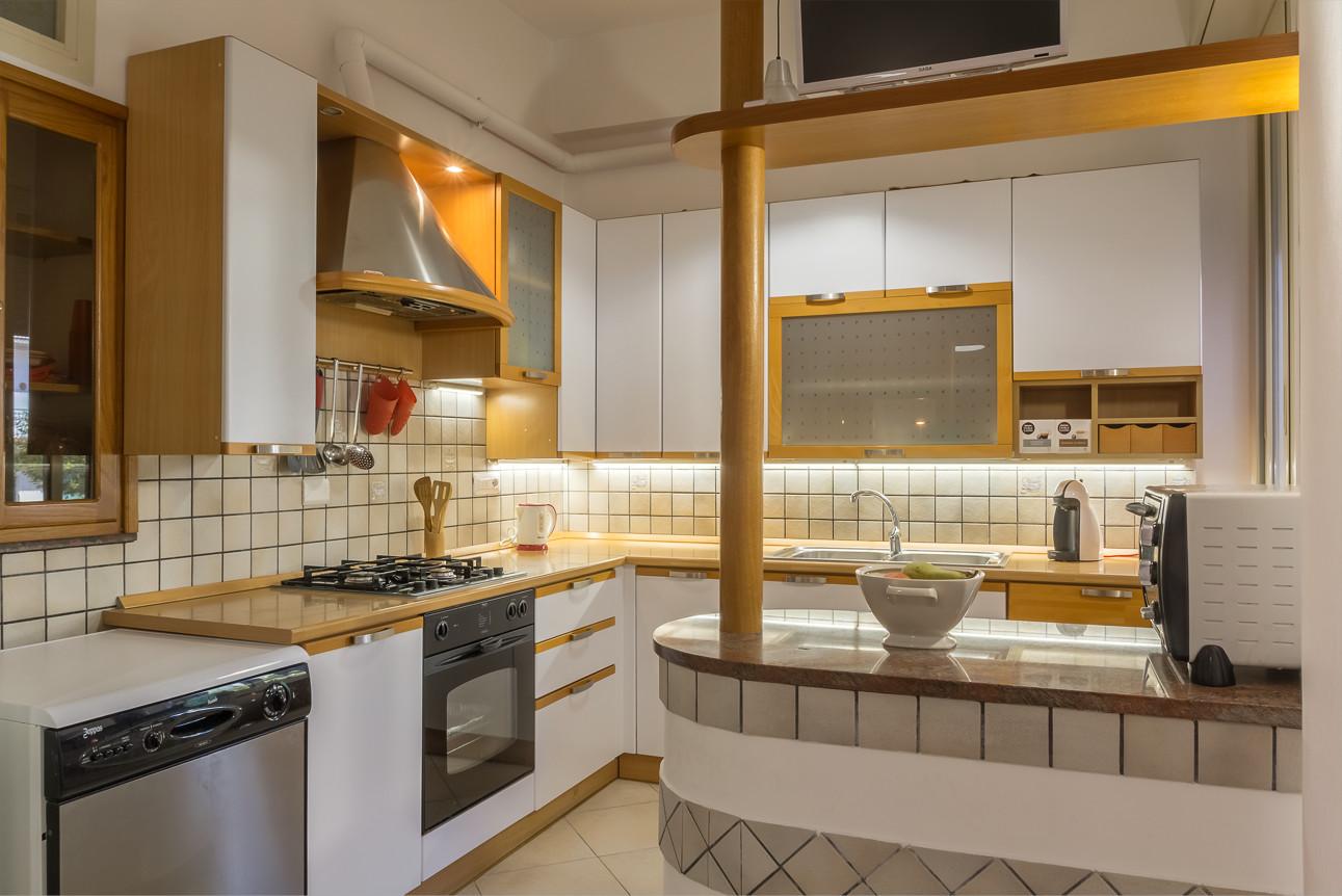 La casa dispone di un grande living con ampio divano letto e cucina in muratura, due camere da letto di cui una con balcone, un bagno con vasca e un bagno con doccia idromassaggio. Completa l'appartamento un lungo balcone sul quale sorseggiare, le sere d'estate,un bicchiere di vino delle nostre terre.