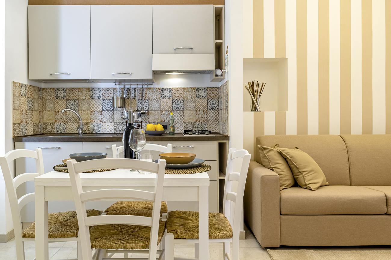 Al secondo e ultimo piano troviamo una cucina con terrazzo e zona pranzo all'esterno.