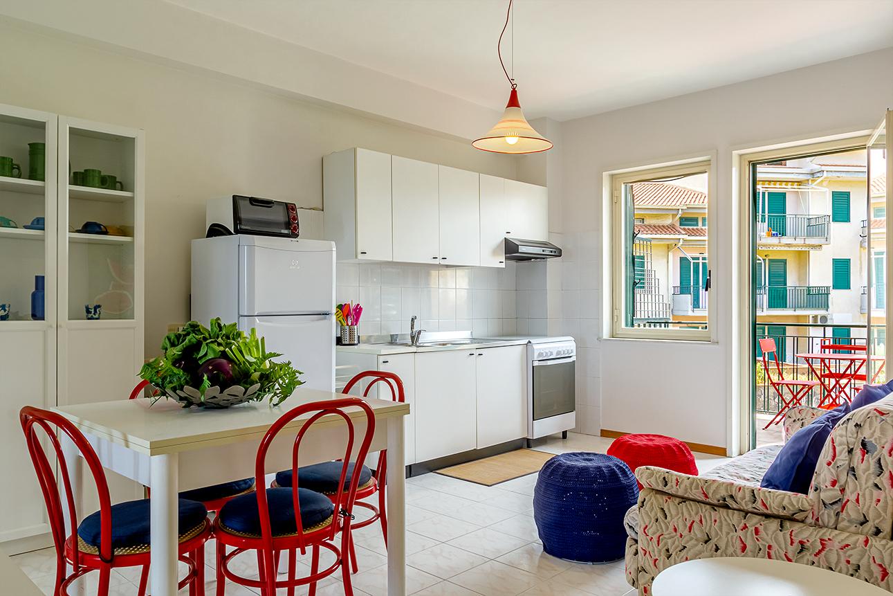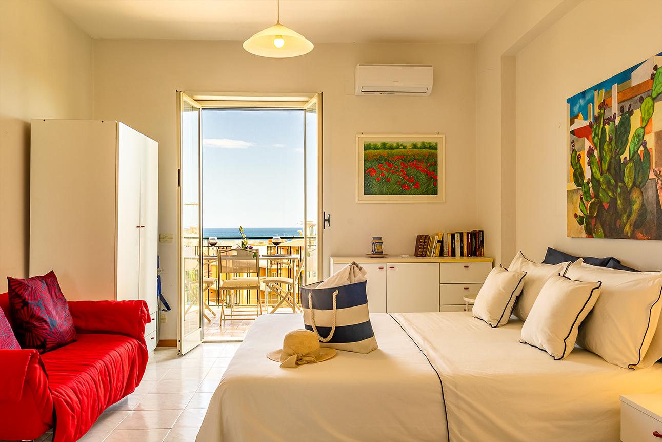 Casa vacanze Giardini Naxos. La Casa di Stefe è un panoramicissimo appartamento con vista sulla meravigliosa baia di Taormina. La casa situata al primo piano ha una camera da letto matrimoniale con terrazzo vista mare, un bagno con antibagno e lavatrice, soggiorno/cucina con divano letto e balcone interno. La casa dispone inoltre di un posto auto all'interno del condominio. La posizione, tra le più richieste di Giardini Naxos, è a pochi passi da ristoranti, bar, supermercato, edicole, posta, spiagge attrezzate e non. Ben servita anche da mezzi pubblici. Posizione strategica per chi vuole visitare la Sicilia orientale, la struttura si trova infatti a pochi chilometri da Taormina, Castelmola, Gole Alcantara, Savoca, Forza D'agro e il monte Etna. Il luogo ideale per chi vuole vivere il mare e scoprire le bellezze della nostra isola.