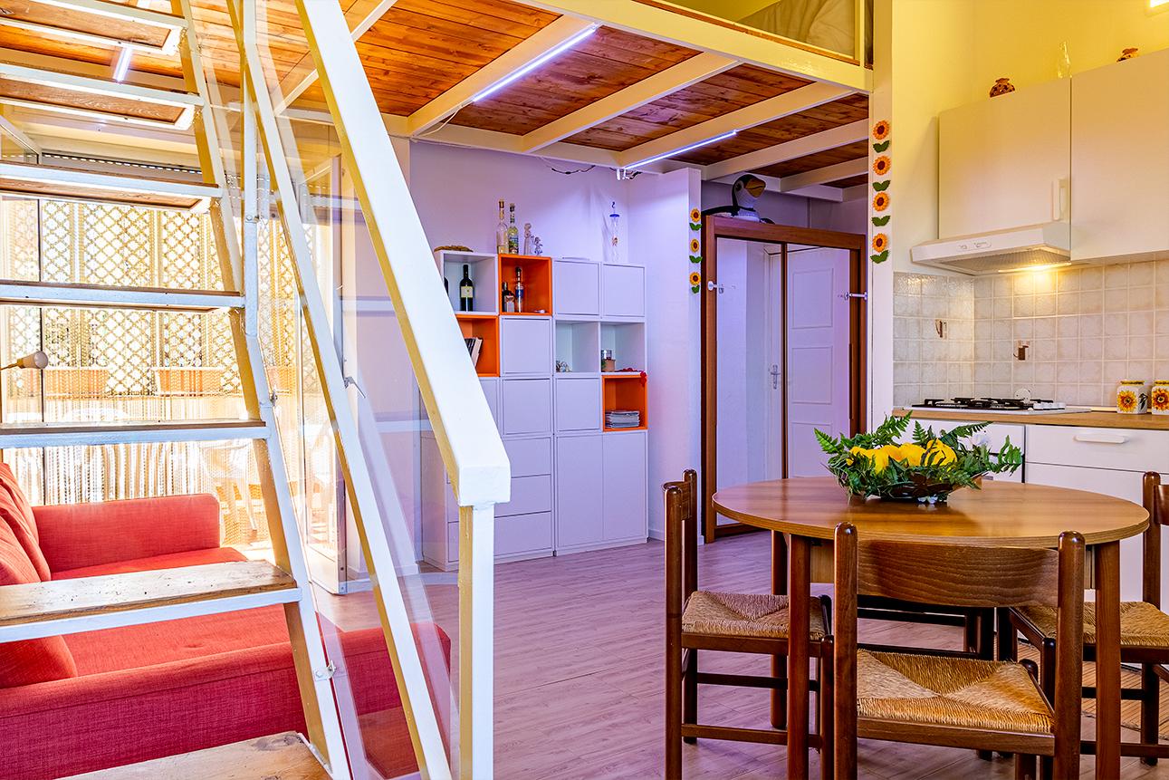 Casa vacanze Giardini Naxos - Accogliente e moderno monolocale con vista mare composto da un unico ambiente soppalcato con angolo cottura, divano letto in soppalco, zona pranzo, bagno e ampio terrazzo vista mare. L'appartamento si trova in un residence a 200mt dal mare, adatto a famiglie e coppie, recintato e vigilato 24h, ampi spazi esterni, piccolo parco giochi, bar, docce esterne e piscina a pagamento con apertura stagionale. Nei mesi estivi animazione, serate danzanti, teatro, tornei di carte, calcetto, bocce e tanto altro. Comoda posizione per raggiungere le più rinomate località turistiche come Taormina, Castelmola, le gole dell'Alcantara, l'Isola bella, Catania, Siracusa e tutte le altre meraviglie della nostra splendida isola. Tassa di soggiorno 2,00 euro a persona per notte.
