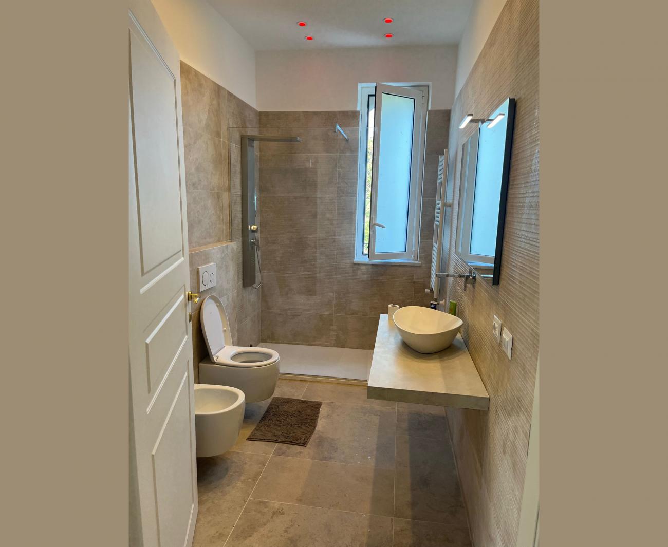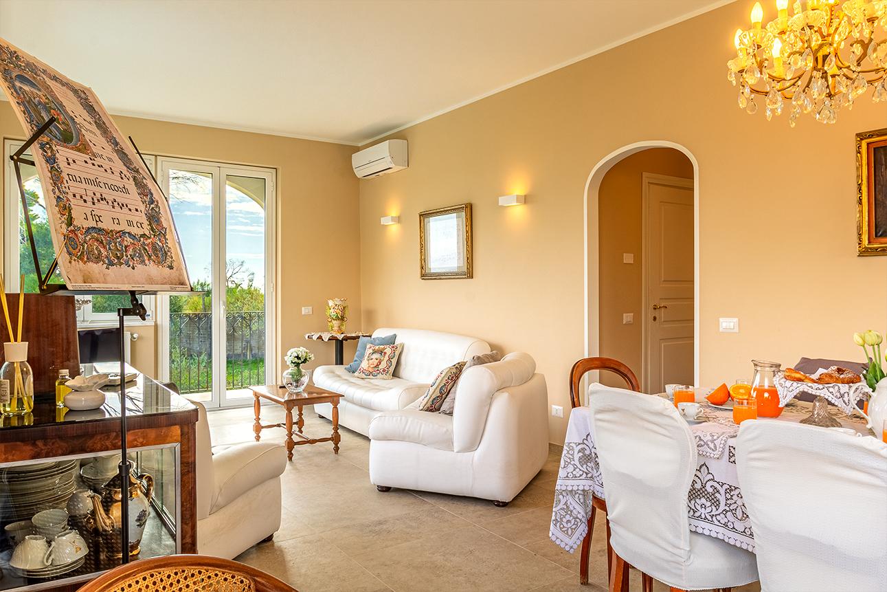 Al 1° piano si trova un appartamento composto da: ampio soggiorno, zona living, cucina, Camera da letto matrimoniale, cameretta con due letti singoli (con possibilità di unirli) e bagno completo. Tutte le camere sono dotate di aria condizionata.