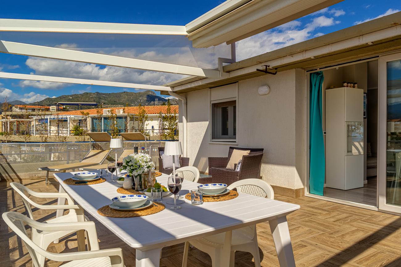 Sospeso tra cielo e mare lungo il pittoresco lungomare di Giardini Naxos, il Naxos Loft offre una raffinata esperienza di soggiorno. Questo incantevole attico vanta una spiaggia privata, regalando agli ospiti un accesso esclusivo alle acque cristalline del mare ionico. Perfettamente posizionato nelle immediate vicinanze della rinomata spiaggia di Lido Bonday, il loft si distingue per la sua spaziosa terrazza panoramica di 90 metri quadrati. Qui, tra un arredamento curato nei minimi dettagli, un solarium e una cucina barbecue all'aperto, gli ospiti possono godere di momenti di puro relax e convivialità.