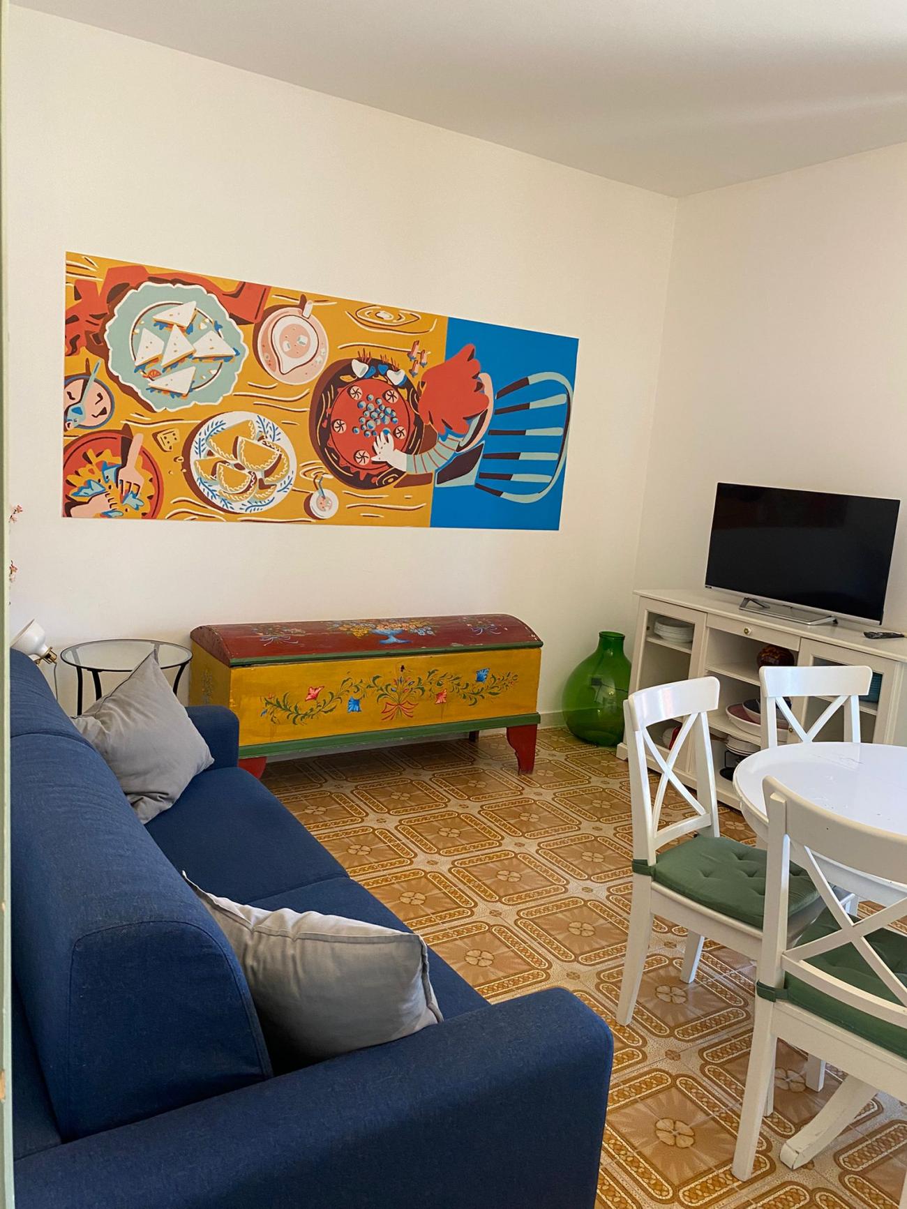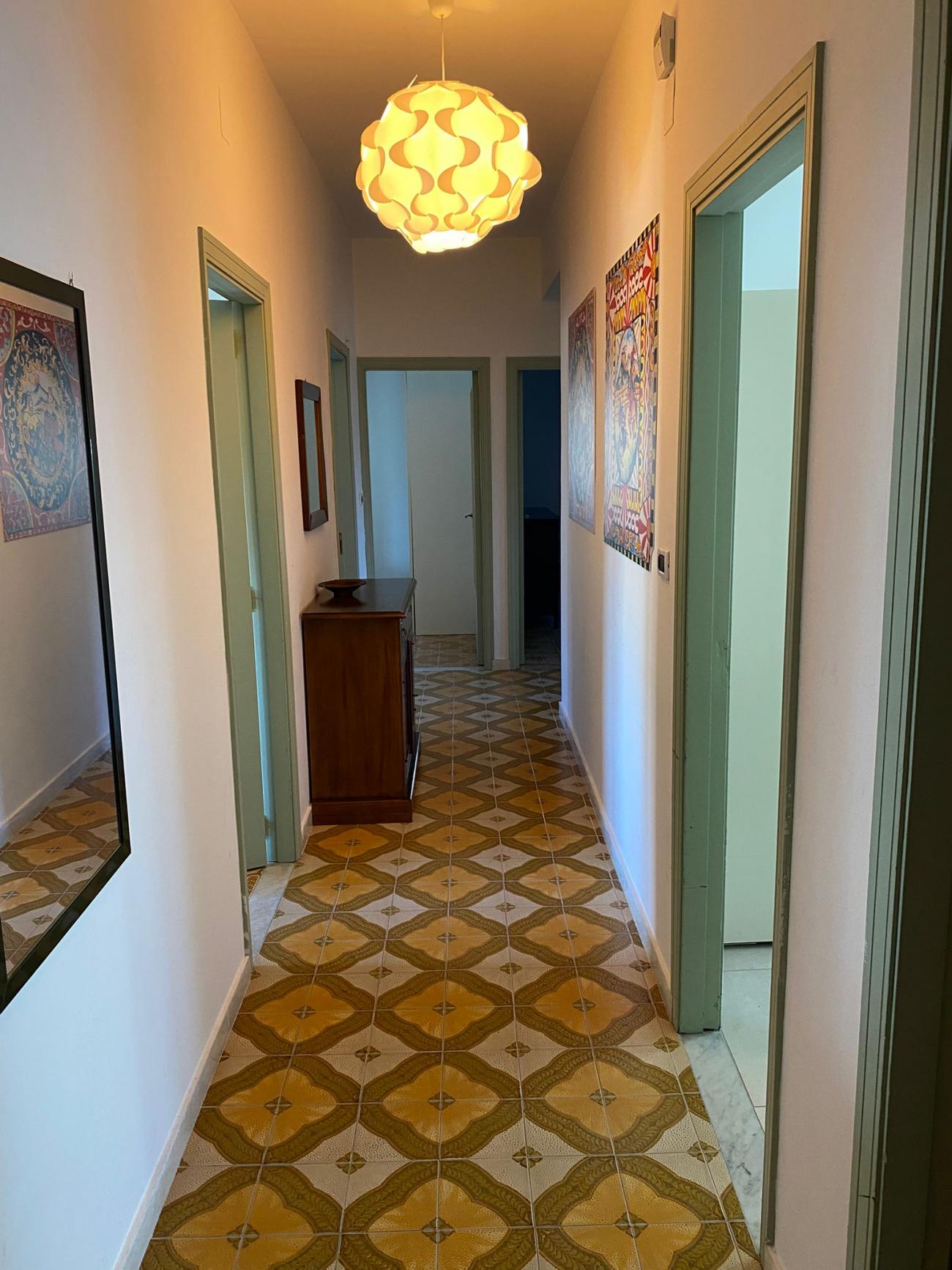 Dall’ingresso si accede a un corridoio che conduce alle camere da letto e apre la strada a un ampio soggiorno, uno degli ambienti più accoglienti della casa. Qui trovano spazio due balconi attrezzati con tavolini, perfetti per cenare all’aperto o godersi un momento di relax in un’atmosfera serena e luminosa.