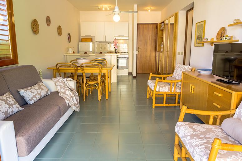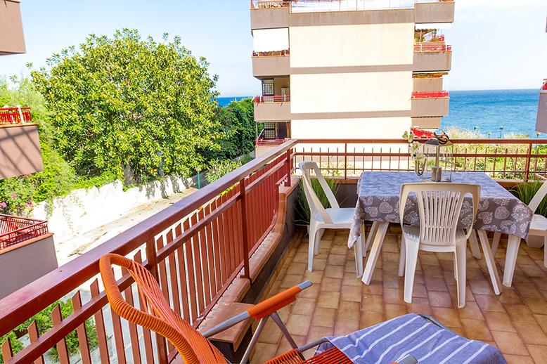 L'appartamento si compone di un ampio living con una cucina all'americana completamente attrezzata e un comodo divano letto per ospiti aggiuntivi. La camera da letto principale offre un letto matrimoniale, mentre la seconda camera dispone di due letti singoli, ideale per i bambini o gli amici che viaggiano insieme. Il bagno è completo di tutti i comfort necessari e dal terrazzino potrete godere di una vista mozzafiato sul mare, perfetto per rilassarsi e gustare i momenti più belli della giornata.