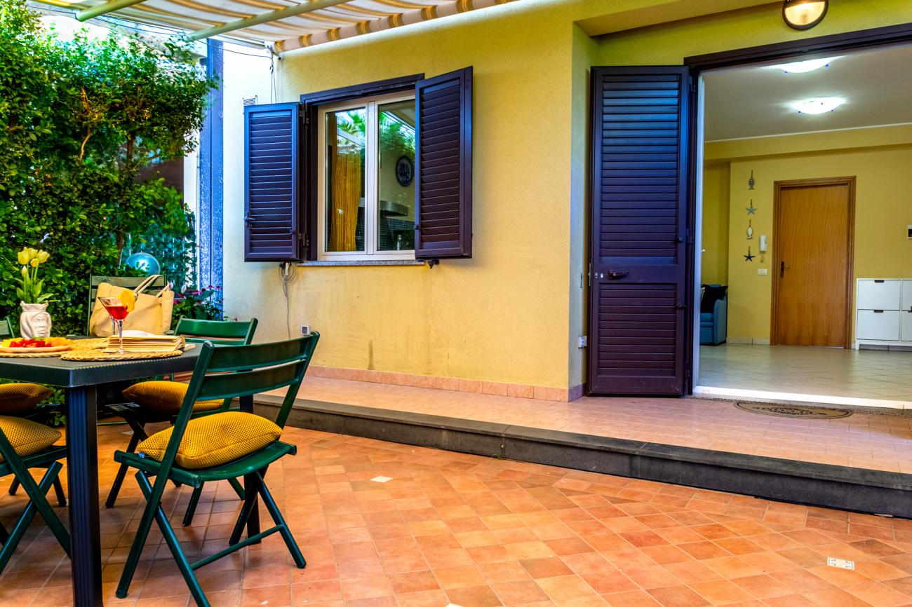 La casa dispone di una terrazza arredata, perfetta per gustare cene all’aperto o semplicemente rilassarsi al fresco, godendo della vista Etna durante il giorno.