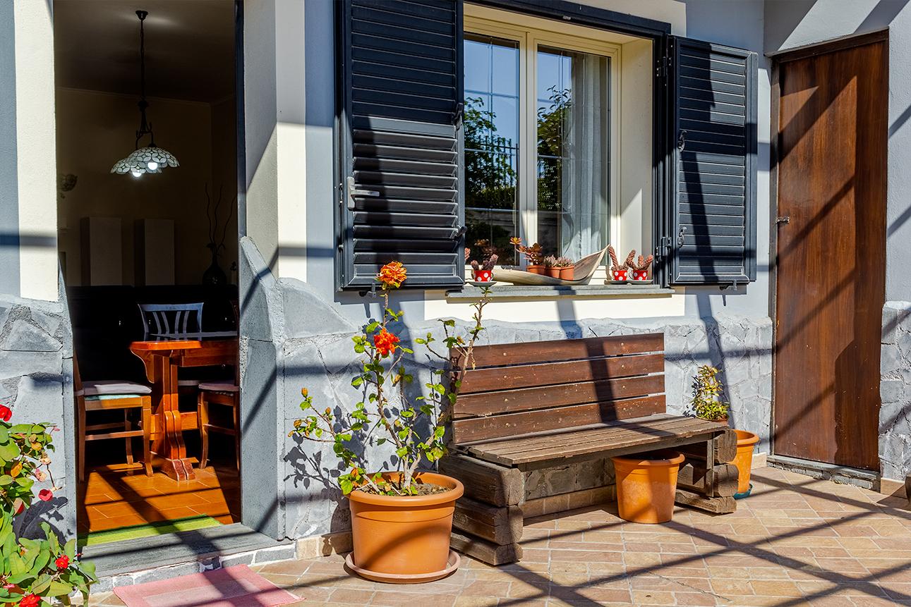 All’esterno, gli ospiti di entrambi gli appartamenti possono usufruire di un giardino ben curato, uno spazio condiviso dedicato al relax e al benessere. Qui si trova una splendida vasca idromassaggio a 5 posti, perfetta per momenti di tranquillità e convivialità immersi nel verde.
