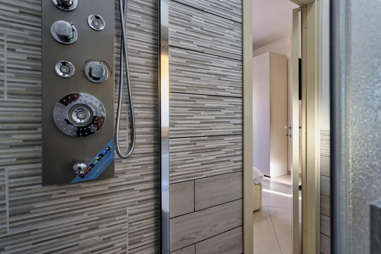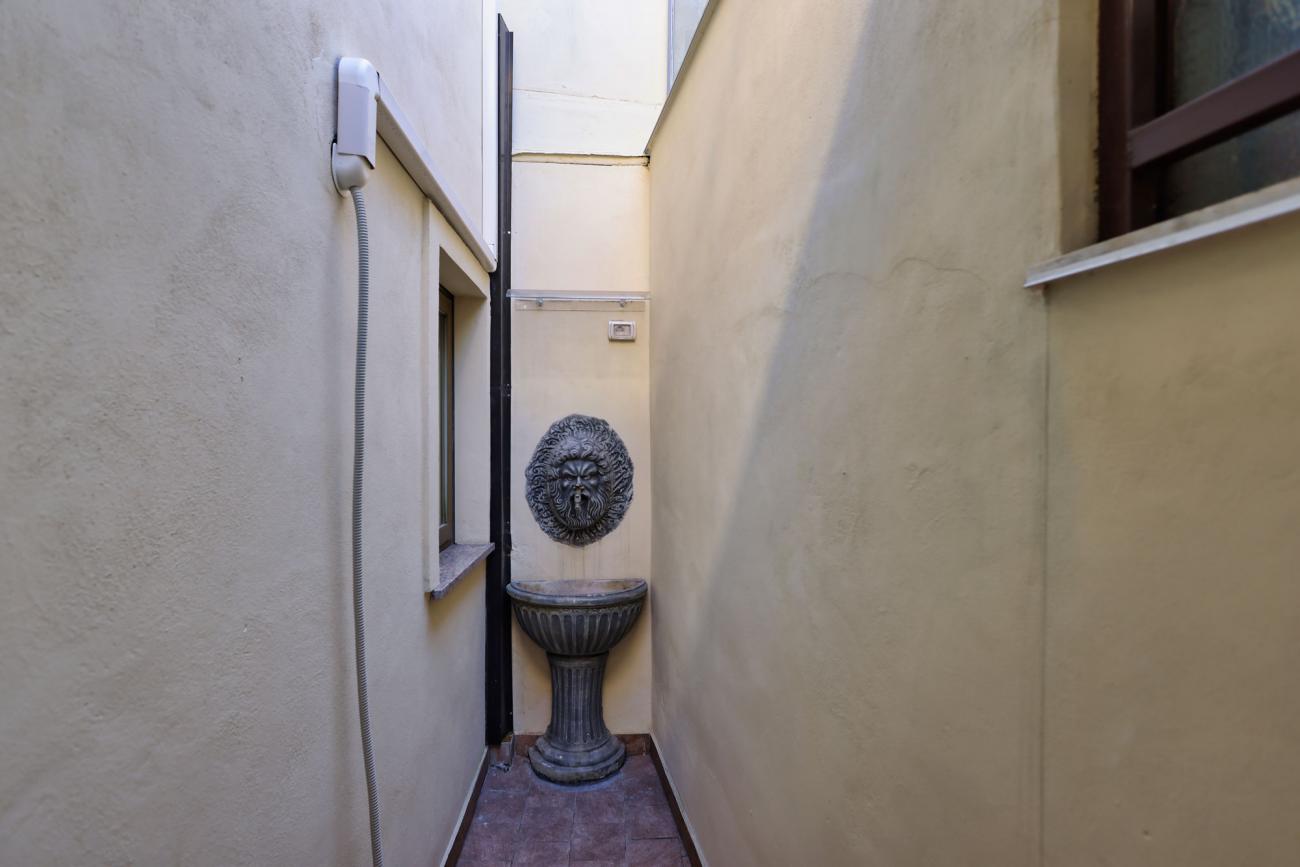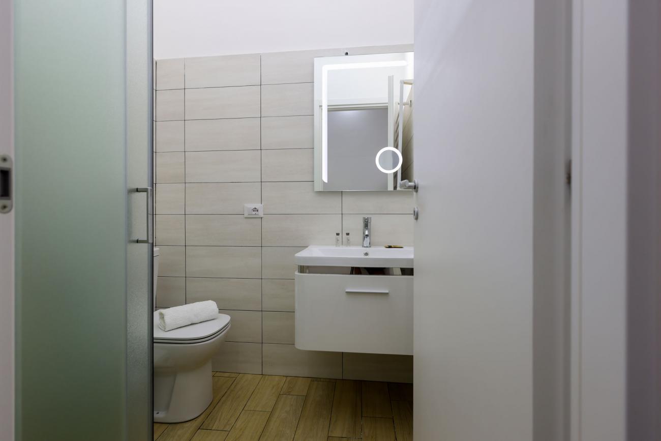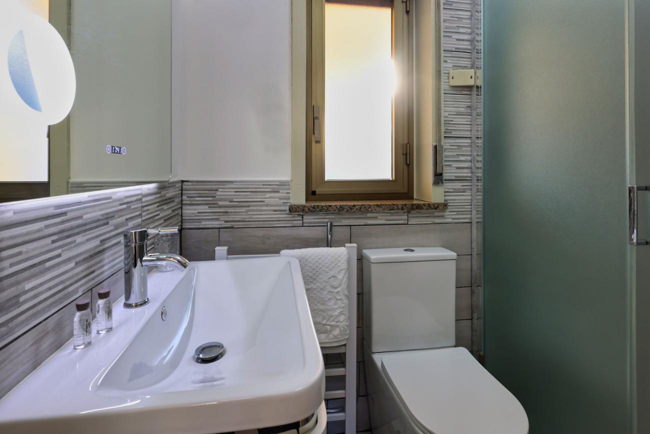 La cucina è completamente attrezzata, perfetta per preparare pasti in autonomia. A disposizione anche un terrazzino privato con vista sulla città e sul caratteristico quartiere circostante, ideale per una colazione all’aperto o per rilassarsi a fine giornata.