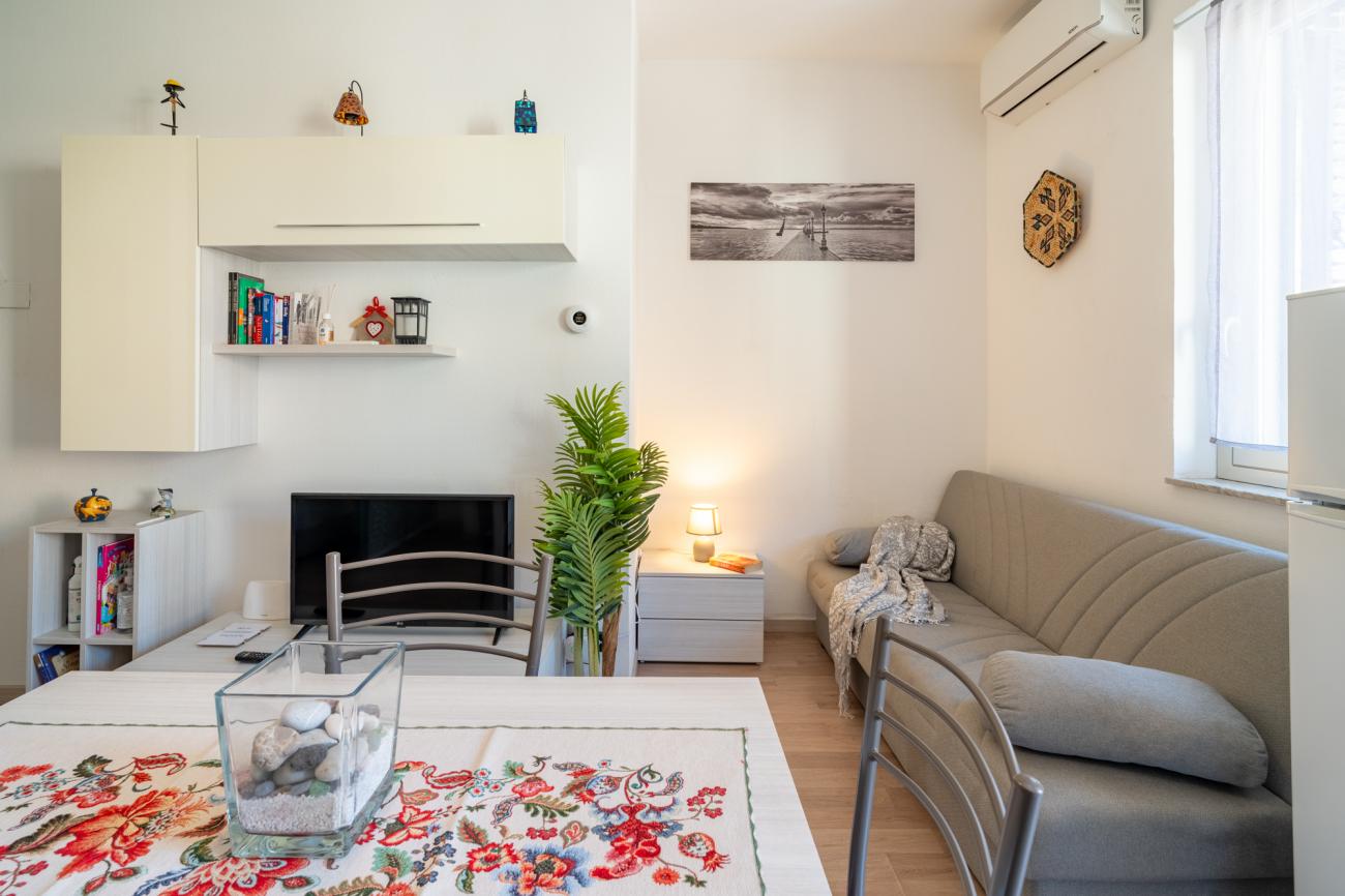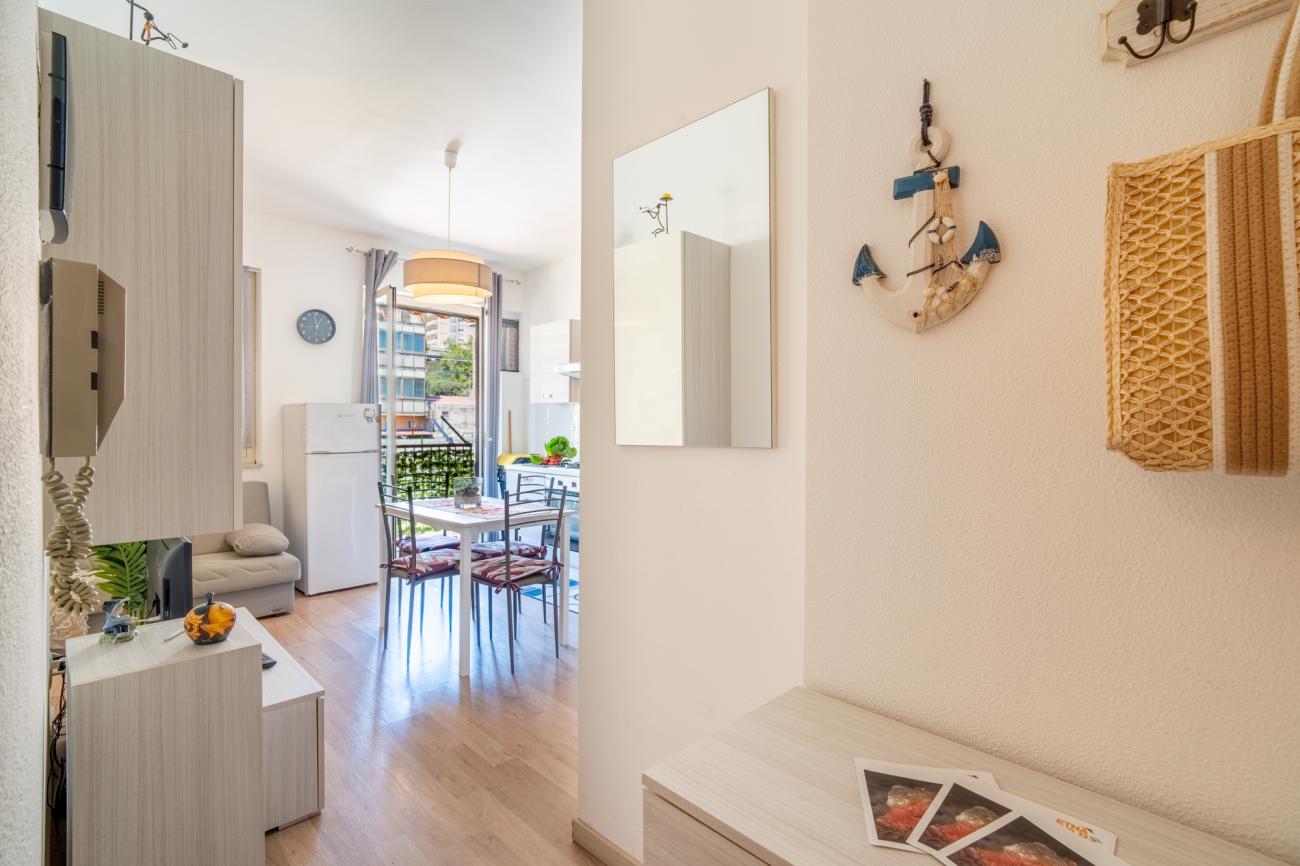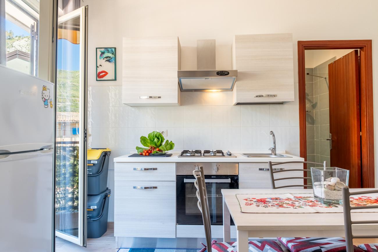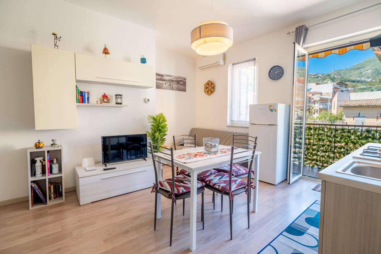 Gli spazi sono stati studiati per offrire comfort e praticità, con ambienti semplici ma curati che permettono di rilassarsi dopo una giornata al mare o in giro tra le bellezze della zona. La posizione, alla fine del lungomare, regala un’atmosfera più tranquilla rispetto al cuore più movimentato di Giardini Naxos, pur restando comoda per raggiungere a piedi bar, ristoranti, gelaterie e tutti i principali servizi. Da qui è facile spostarsi per visitare Taormina, con le sue vie caratteristiche e il Teatro Antico, oppure organizzare escursioni verso l’Etna e le altre località della costa ionica siciliana. Questo monolocale è quindi la scelta ideale per chi cerca una sistemazione vicinissima al mare, in un contesto autentico e rilassante, con la libertà di vivere la vacanza senza l’uso dell’auto per andare in spiaggia e con la possibilità di godersi ogni giorno la bellezza del lungomare di Giardini Naxos. Tassa di soggiorno €3 a persona a notte.