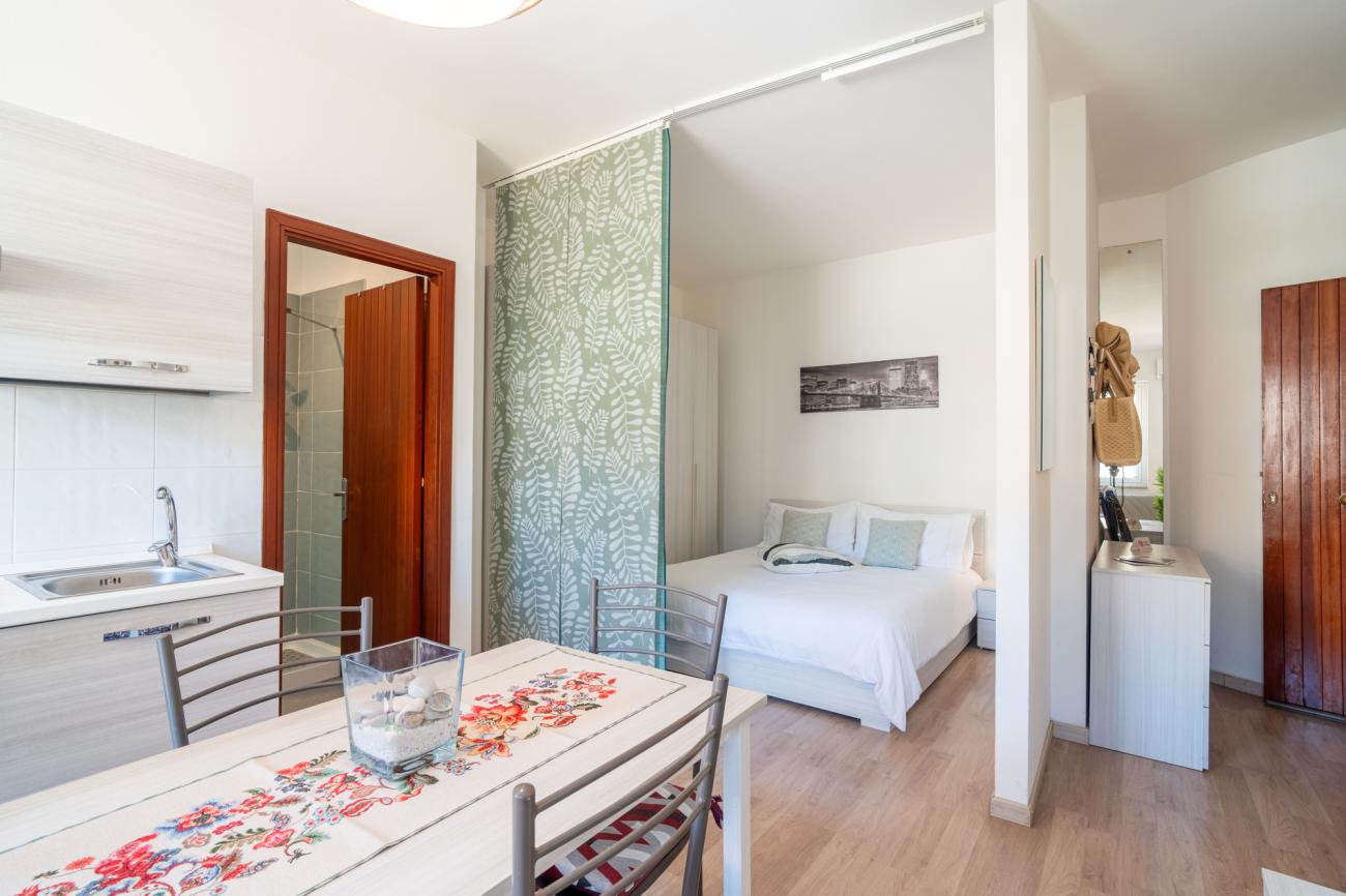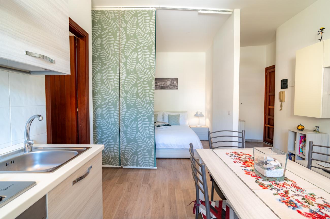 L’alloggio è composto da una confortevole camera da letto e da un bagno, ed è pensato per ospitare fino a un massimo di tre persone, risultando così ideale per coppie, piccole famiglie o amici che cercano una base pratica e ben organizzata.